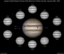 de Júpiter (Io, Europa y Calisto) proyectaron sus sombras oscuras sobre
