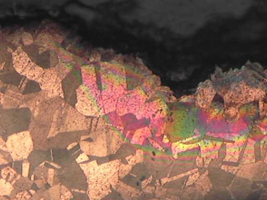 granos de microestructura del metal. La ruptura frecuente de la película
