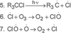 La descomposición del ozono por el CFC (hidrocarburo clorofluorado) se