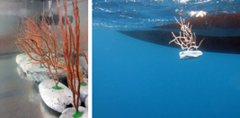 Gorgonias en laboratorio y durante los trabajos de replantación del